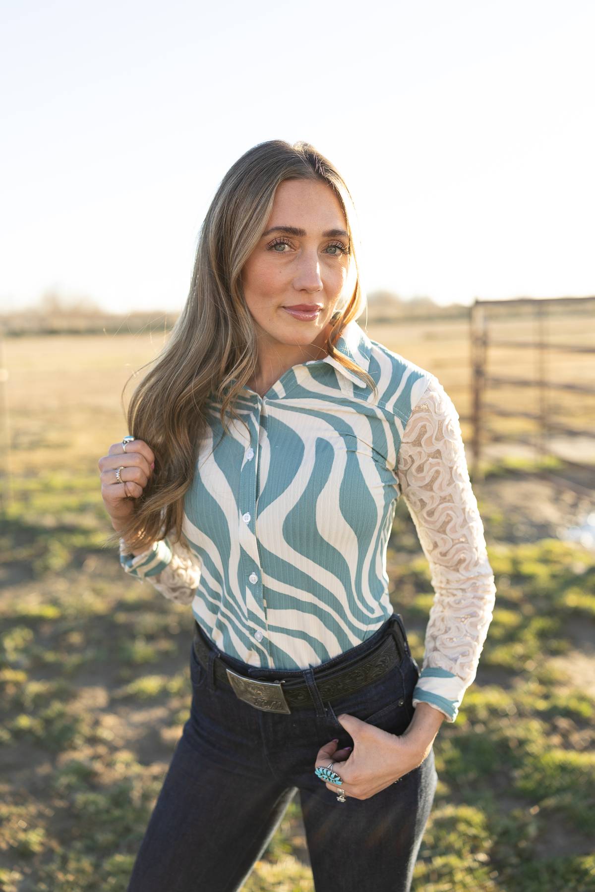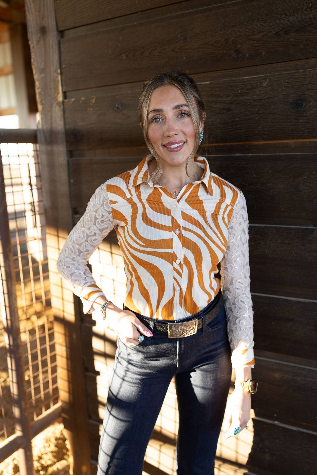 No ironing. No dry cleaning. No constant re-tucking. Just a comfortable, polished look that keeps up with busy rodeo moms and rodeo babes alike.